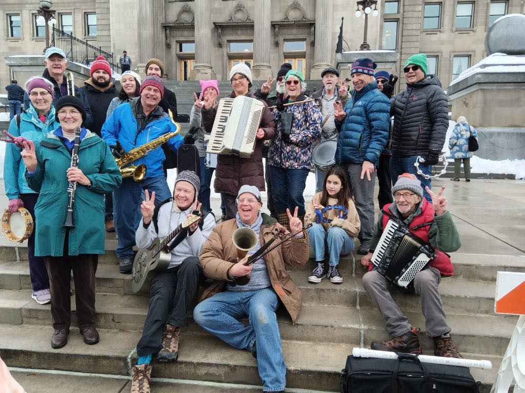 People came from all corners to the Capitol grounds, filling the steps, spilling into the street and Cecil D. Andrus Park while the Idaho Peace Band played protest songs such as “We Shall Overcome” and “This Land Is Your Land.”
